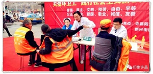 今天上午9时,许昌阳光医院联合许昌市新兴街道办事处举行“关爱环卫工人•践行社会主义核心价值观”,为环卫工人献爱心、送温暖以实际行动传播正能量,引导社会尊重环卫工作、关爱环卫工人。